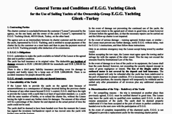 DownloadGeneral Charter Conditions. Review the terms and conditions for chartering one of our yachts to ensure a smooth and enjoyable experience.